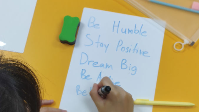 Each week, they acquired new knowledge in fields of creative typography where they integrate their writing styles with their quotes, understanding colour symmetry with the painting of their wood base, and the transformation of their quotes into LED lighting. This project aims to bring together individuals and families in fostering intergenerational dialogues, encouraging conversations and building new relationships.